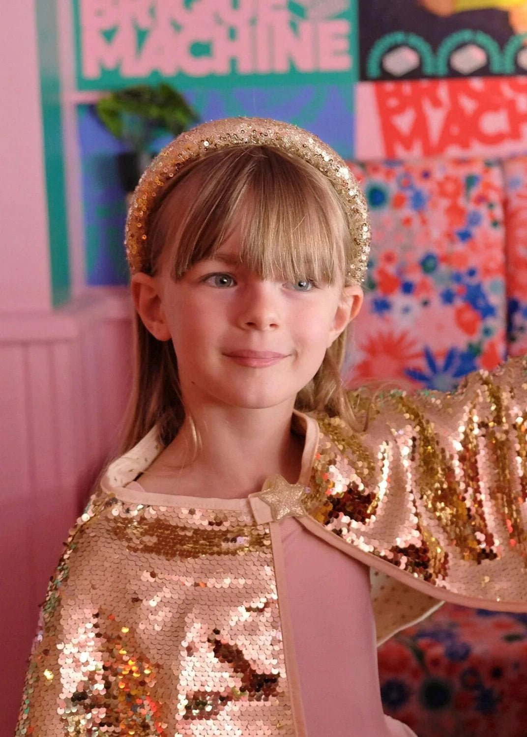 Sparkle velvet twist headband by Rockahula Kids. This gorgeous sparkling velvet headband features a twisted plait detail and is scattered with delicate shimmer. Made from the softest dusky pink velvet fabric, with grosgrain ribbon wrapped ends to ensure a comfortable fit for little heads. The perfect party essential!