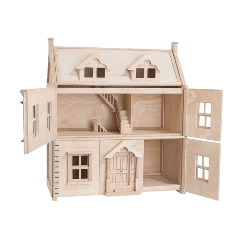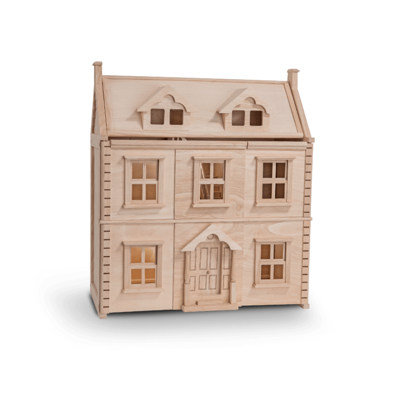 This dollhouse has 3 floors including the attic. Each floor is accessible with opening panels and realistic sashes that slide open and shut. Additional attic space can also be made into any kind of room your child desires (furniture and dolls not included).