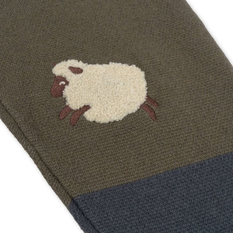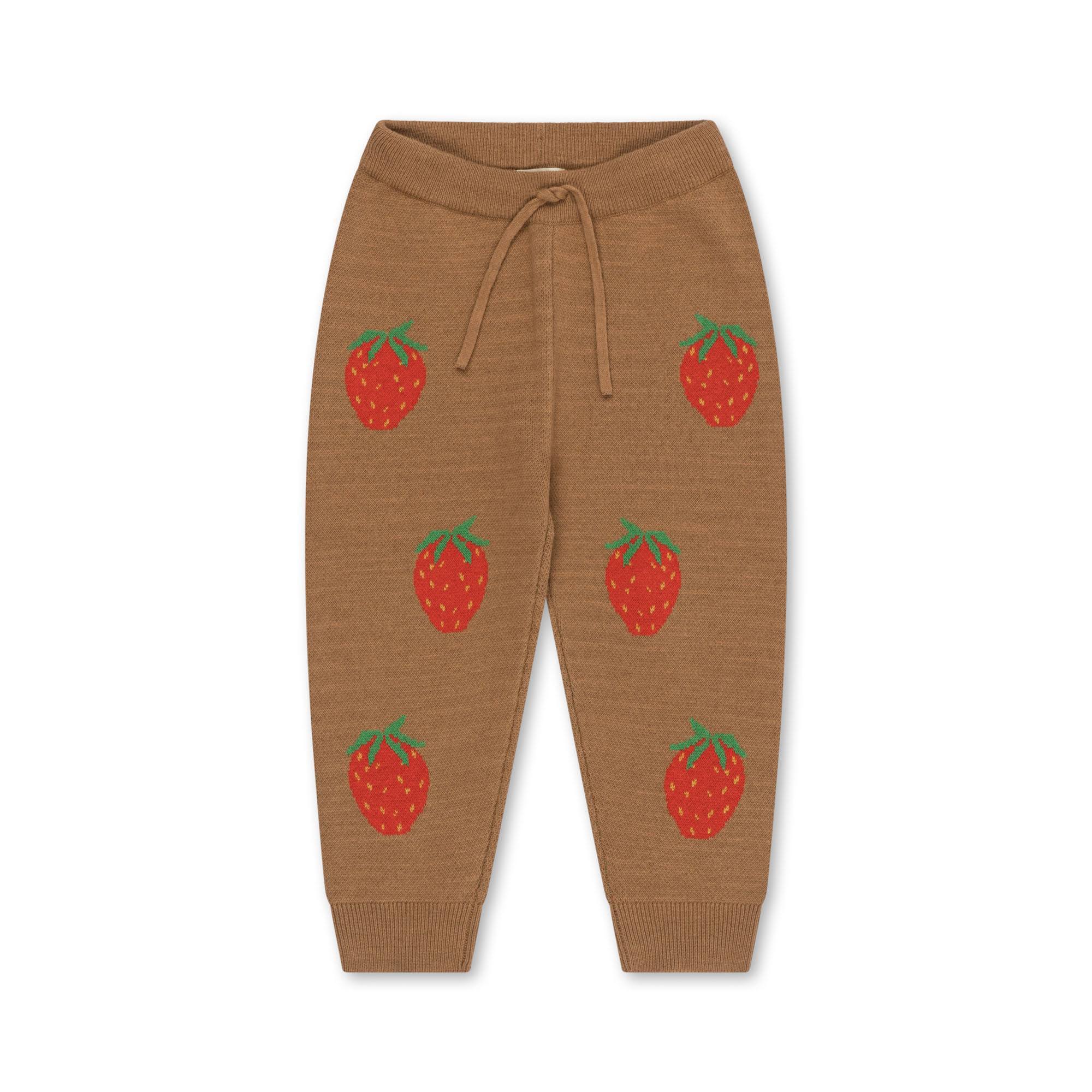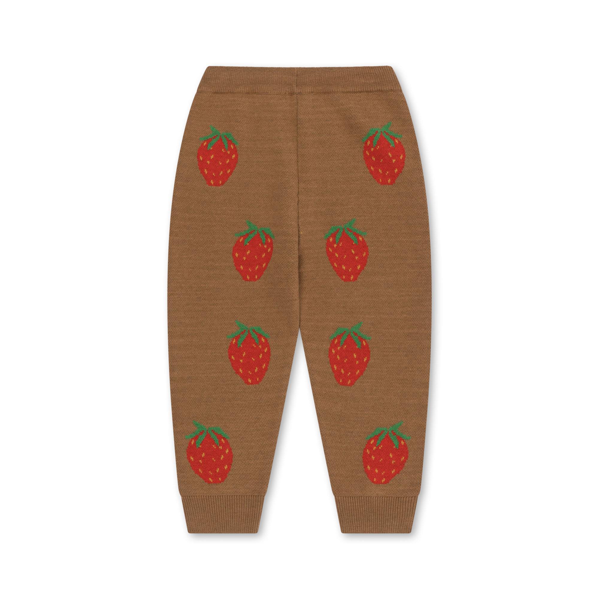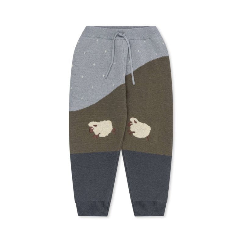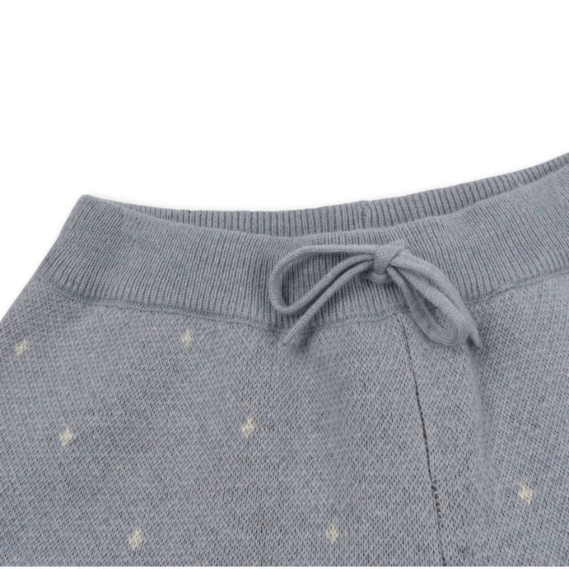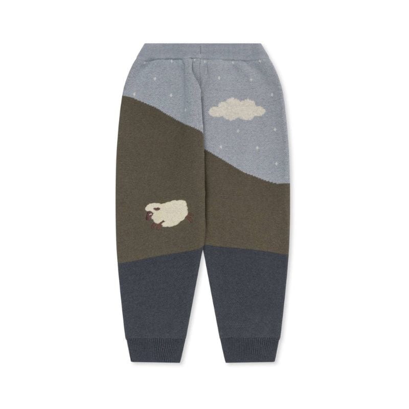 Soft jacquard knit pants made in 50% organic cotton and 50% wool. Designed with an elastic drawstring waistband and ribbed cuffs.