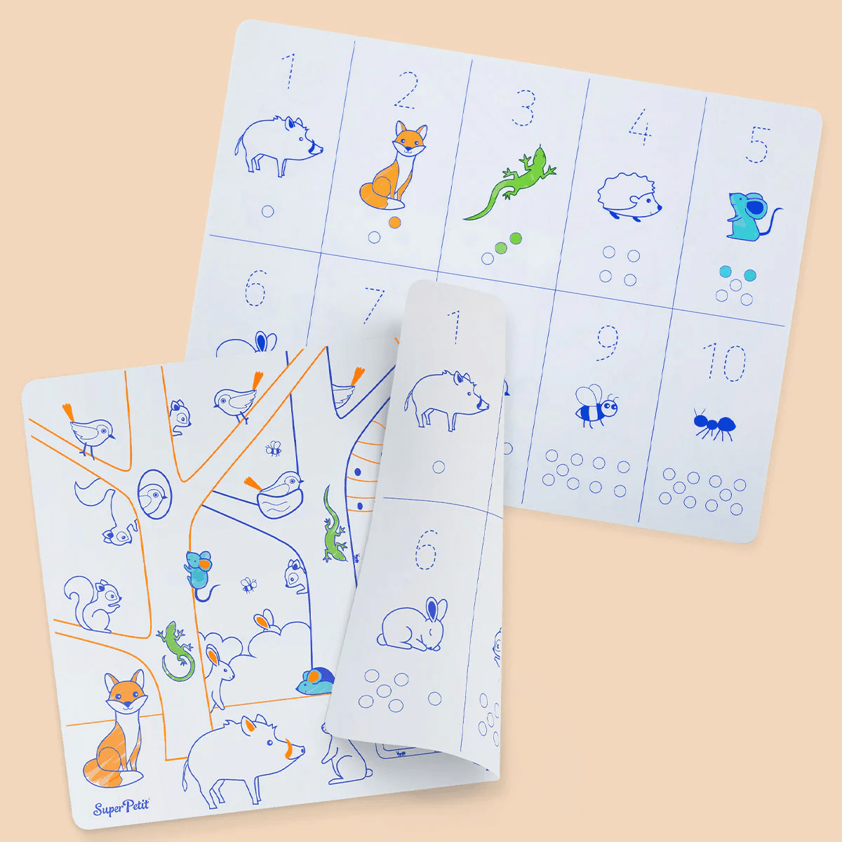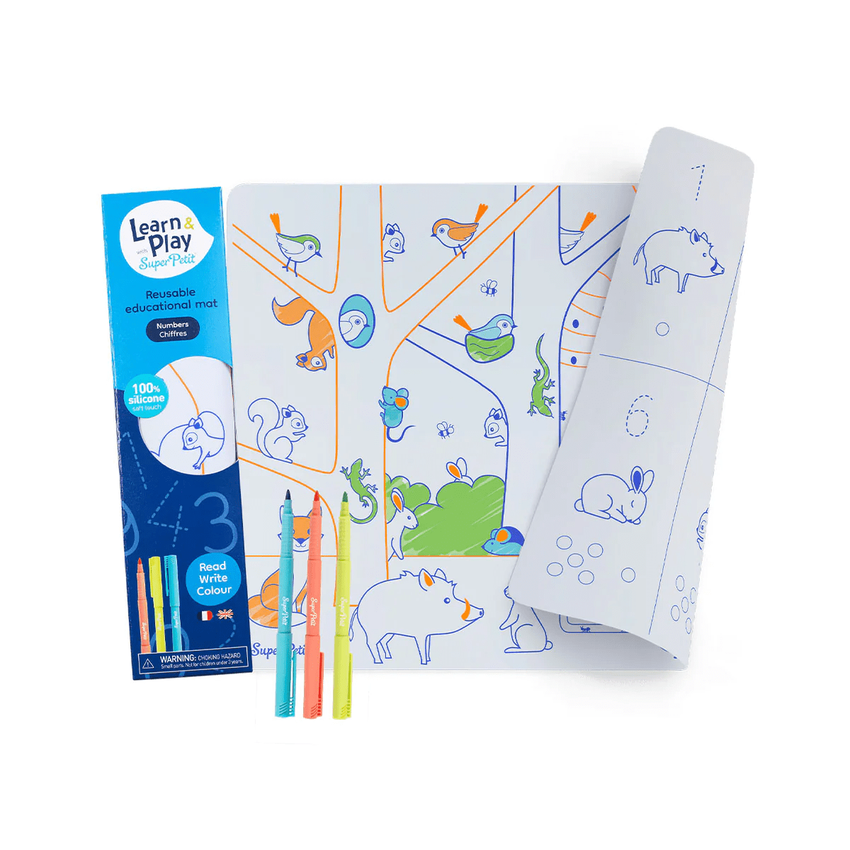 Hours of fun are assured with the numbers kit with silicone mat + 3 markers from the Super Petit brand.