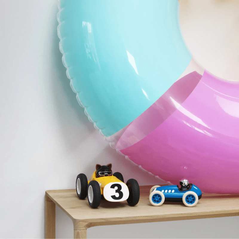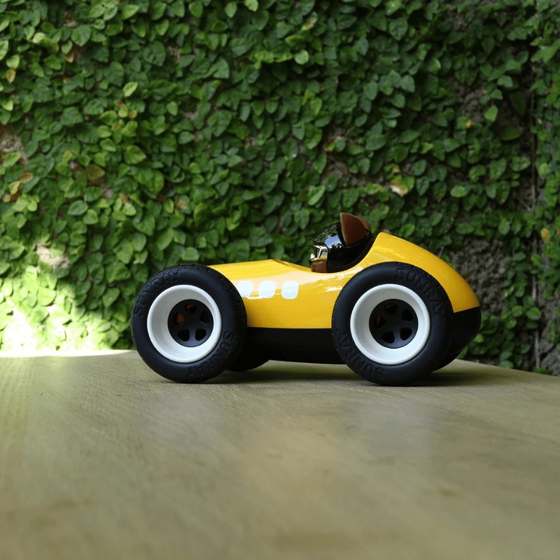 Now, Rufus (Dog Car) has a fierce competitor and he will need to wear his best game face. Let's talk about those crazy wheels! The thinking behind the extravagant shape is an amalgamation of the beefy 80's yo-yo and rally car wheels of the same era and yes, they are as impossibly deep asPlayforever could make them and to give them an even wider stance they've added that exaggerated lip. Playforever call these wheels the 5 spoke wacky classics wrapped in Sunray rubber. Anyway, let's not waffle. Line up Rufus and Karlos on the grid and let's get racing.