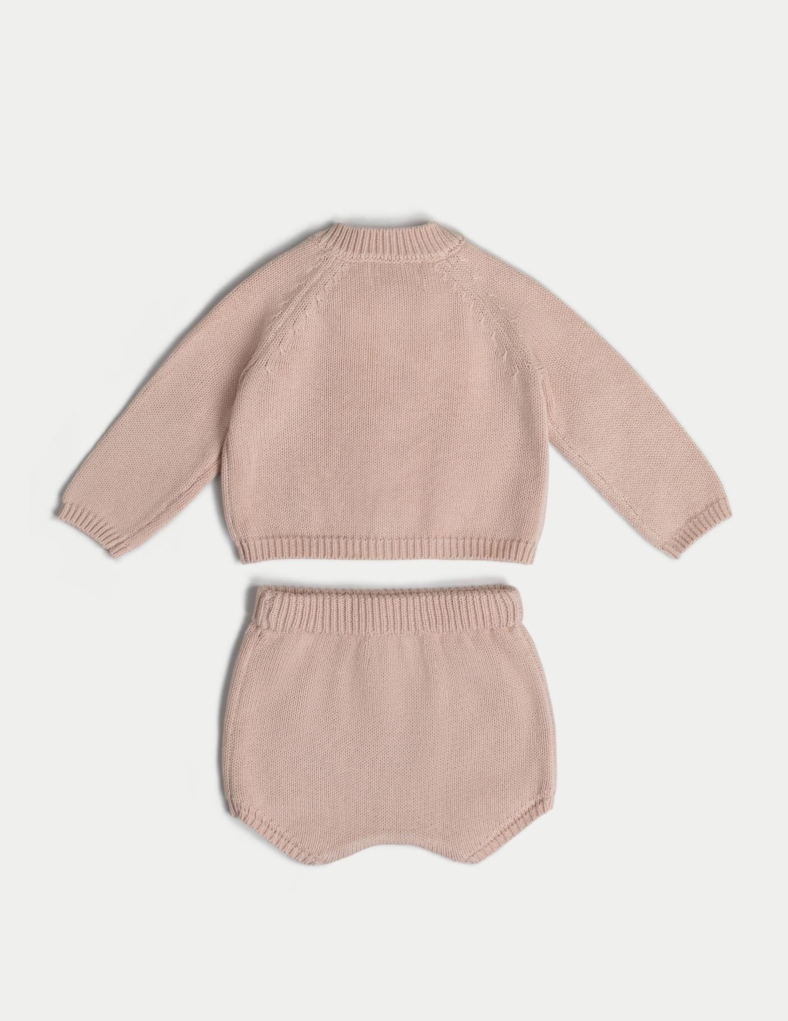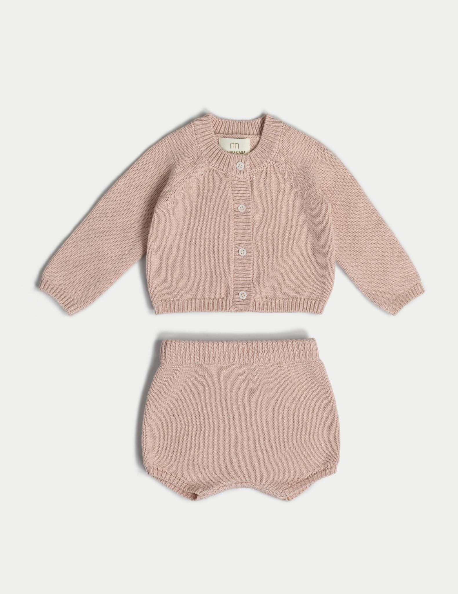 Organic Cotton Baby Knit Set Cardigan & Short - Pink